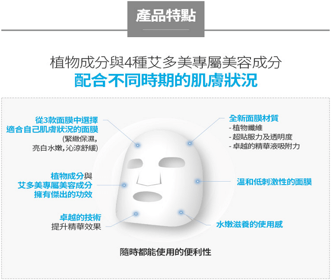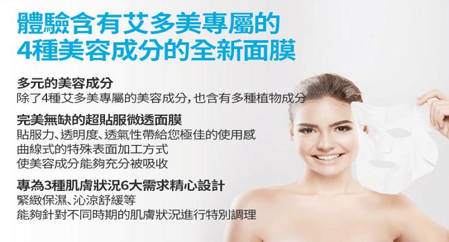 「艾多美Daily面膜」嚴格篩選成分與創新面膜布打造高效的綜合效果。